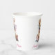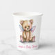 Pretty baby shower paper cups, with graphics of a sweet teddy bear with pink and blue wing, in the middle. Personalize the pink text to suit your needs. Matching invitations, paper napkins and plates are available.