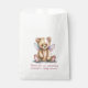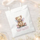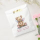 Cute baby shower thank you favour bags done in white, with graphics of a sweet teddy bear with pink and blue wings. Personalize the pink custom text to read what you want.