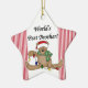 World's Best Brother customizable teddy bear design keepsake holiday ornament features a teddy bear with holiday lights and a stocking cap and an area on the back of the ornament where you can easily personalize it with a name and year or date or other text!