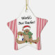 World's Best Teacher customizable teddy bear design keepsake holiday ornament features a teddy bear with holiday lights and a stocking cap and an area on the back of the ornament where you can easily personalize it with a name and year or date or other text!