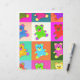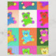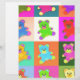 pop art colourful neon lime green aqua teddies toys stuffed animals children kids child boy girl unisex rainbow orange retro vintage print pattern squares