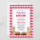 An original design by © Socialite Designs. Gather your little ones and their favourite plush pals for a sweet afternoon of storytelling and snacks! This customizable Teddy Bears' Picnic invitation features an adorable design with two cuddly brown bears, each tending to their blue and red polka-dot lined picnic baskets. Set against a charming reddish-pink gingham backdrop, it evokes classic picnic vibes with a playful twist. Perfect for kids' birthday parties, playdates, or whimsical outdoor gatherings—just add your details to make it uniquely yours!