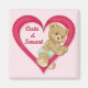 Adorable teddy bear sitting on a deep pink heart. This little bear brings a message for valentine's day or all year round. Text say Cute and Smart.