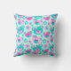 Fun pastel teintes rose et aqua turquoise bleu vert ours en peluche visages et fleurs graphiques répéter coussin motif coussin parfait pour une chambre pour filles. Graphisme conçu par Sarah Trett. www.sarahtrett.com