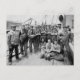 Old photo of Teddy Roosevelt with crew on deck of sailboat: 1st Mate, Chief Engineer and rest of crew.