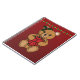 This sweet, brown teddy bear has decked the halls with lights and herself with a bit of holly so she can create a great Christmas mood for giving someone special gift of a pretty red poinsettia.