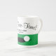 Tee-time funny tea mug gift for golf players. Cute bone China mug with ball and putt hole on putting green design. Add your own personalized quote or text. Fun present for golfer, dad, mom, instructor and fan.