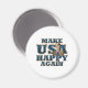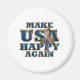 Despite the troubles, it's time to Make the USA Happy Again with this slogan and country woman prancing through her farm fields design. Slogan apparel, magnets, and gifts getting happier Americans.magnet template