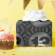 Black, distressed design, wrapping paper on a roll with age template. Perfect for a teenage boy’s party with his age pattered inside a round silver grey image in black grunge font. Use the template to include the birthday boy’s age.