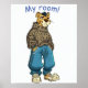 A gift for the teenage boy in your life. A great home decor for the bedroom that says "My room!" is great for the door. A lovely tiger in baggy teen fashion.