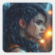 A young woman with wet hair stands pensively against a wall in the rain, illuminated by the glow of streetlights. The background features soft, blurred lights, creating a moody, atmospheric scene.