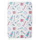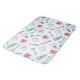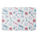 A bath mat with a dental themed pattern. Featuring colourful illustrations of teeth, toothbrushes, and various dental tools.