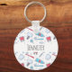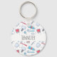 Personalized keychain with a dental themed pattern. Featuring colourful illustrations of teeth, toothbrushes, and various dental tools.