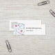 Mini business cards with a dental themed pattern. Featuring colourful illustrations of teeth, toothbrushes, and various dental tools.