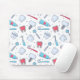 Mousepad with a dental themed pattern. Featuring colourful illustrations of teeth, toothbrushes, and various dental tools.