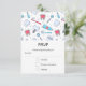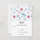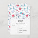 An RSVP card with a dental themed pattern. Featuring colourful illustrations of teeth, toothbrushes, and various dental tools.