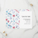 Save the date card with a dental themed pattern. Featuring teeth, toothbrush, and dental tools.