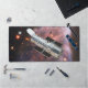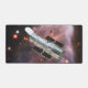 Le télescope spatial Hubble de la NASA est un instrument extraordinaire d'observation scientifique. Lancé en 1990, ce satellite d'astronomie orbitant dessert la communauté scientifique depuis plus d'un quart de siècle. Il reste opérationnel à ce jour, toujours en renvoyant des photos étonnantes d'étoiles, de galaxies et de nébuleuses et des planètes de notre Système Solaire, le tout dans l'ultraviolet, visible et proche infrarouge. Cinq missions de réparation ont amélioré tous les principaux instruments et corrigé une erreur de fabrication impliquant le miroir principal. Il est possible que Hubble soit dernier jusqu'en 2030 ou même 2040 avant de procéder à la désorbation. Le télescope spatial James Webb est destiné à prendre sa place d'observatoire orbitant, qui pourrait être suivi du télescope spatial à grande ouverture de technologie avancée pour la prochaine génération d'observations spatiales profondes. La TVH est présentée contre un arrière - plan de son image de la Nébuleuse fantôme dans la constellation de Cassiopée.