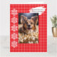 Red and white pet photo Christmas card with white snowflakes. Tell your dog I said Merry Christmas.
