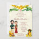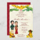 Telugu Tamil South Indian wedding invitation template instant download with banana leaves, kalash and lamps and cute in traditional clothes Hindu bridal couple.