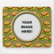 Tasty cheeseburger template border design. Just replace the background template with your own family photo or funny face. Image available on various gifts and products.