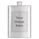 The product is a good size and came exactly as it was pictured. The lid is not attached to the flask, which could be dangerous on drunken nights... The print came out surprisingly well and looks very sharp. Would definitely recommend.