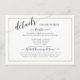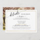 TEMPLATE. Customize with the wedding information you need to communicate to your family and friends. An elegant gold, thin border and divider line with script handwriting "details." On the reverse side an engagement photo session image. Art and design by internationally licensed artist and designer, Audrey Jeanne Roberts, copyright.