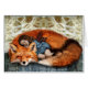 Le temps de petit somme (Fox et enfant) - images vintages contemporaines de carte de voeux a intégré avec l'intérêt et le collage de texture