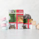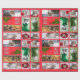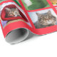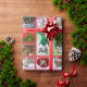 Ten cat photos on wrapping paper, each appears four times, arranged in a Christmassy collage with red borders. Happy holidays and to all a good night.