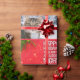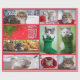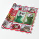 Ten cat photos on wrapping paper, arranged in a Christmassy collage with red borders.