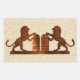 A computer-generated "wood carving," in traditional style; lions guarding the Ten Commandments.