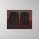 Mount Sinai was covered by the cloud for six days, after which Moses went into the midst of the cloud and was "in the mount forty days and forty nights." (Exodus 24:16-18) G-d wrote the Ten Commandments or Aseret ha-D'varim (Ten Statements, or Ten Declarations.) as they are known in the Torah (Aseret ha-Dibrot in Rabbinical texts)) on the tablets with His finger."Ten Commandments" is a mistranslation in Hebrew ten commandments, which would be Aseret ha-Mitzvot. According to a midrash the words of the Ten Commandments were not engraved on the surface, but rather were bored through the full thickness of the stone. The stones in the centre part of some letters were not connected to the rest of the tablet, but they did not fall out. And the tablets they could be read exactly the same way from both sides, not backwards from one side, as would be expected. This miraculous writing could only have been accomplished by G-d Himself. It is also possible that the tablet were engraved on both sides with some of the Commandments on one side, others on that reverse. This would allow for the tablets to be smaller than they would be otherwise and, accordingly, less heavy. Moses was on the mountain forty days and forty nights." (Exodus 24:16-18). Towards the end of this period the children of Israel decided that something must have happened to Moses and they prevailed upon Aaron to make a golden calf. When Moses descended he saw the idol and smashed the tablets in anger. Later G-d instructs Moses to "Hew thee two tables of stone like unto the first: and I will write upon these tables the words that were in the first tables, which thou brakest." (Ex.34:1) "And he wrote on the tables, according to the first writing, the ten commandments, which the LORD spake unto you in the mount out of the midst of the fire in the day of the assembly: and the LORD gave them unto me." (Deuteronomy 10:4) It is not known in what language the Commandments were written as historian tell us Hebrew did not yet exist as a fully-formed language at the time of the Exodus. It may have been proto-Canaanite out of which both the Hebrew language and alphabet emerged. Some say the tablets were engraved in Egyptian hieroglyphics as Moses had been educated in Pharaoh's court. For aesthetic purposes I have used the traditional abbreviated form of the Commandments in a modern font. On the other hand I have I did not use the round-topped tablet shape usually seen. Tablets of that type were typical of those made in the Roman empire. I believe that the second set of tablets would be more roughly hewn.