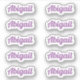Set of ten cute name labels in pretty handwriting style font. Use them to decorate and mark your possessions, including makeup, notebooks, phone and other electronics, water bottle and other things that will look better and prettier with your name on them. The design in pretty lavender is decorated with a darker shadow lines that give it an interesting look and make your name pop up visually.