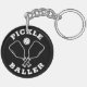 Porte - clé de pickleball tendance avec un logo "PICKLE BALLER" personnalisé de deux pagaies et une balle délimitée par l'en-tête. Une idée de cadeau amusant pour le pickleball qui est parfait pour les anniversaires, la fête des mères, la Fête des pères, l'anniversaire, n'importe quel jour vraiment! Disponible dans un assortiment de couleurs modernes et énergiques.