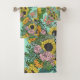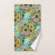 Ce joli bouquet fleuri fleuri, coloré à la main, composé de tournesols jaunes et oranges, de roses et marguerites roses, de feuillage vert eucalyptus et de feuilles floraux, sur un motif arrière - plan simple couleur menthe magique, illuminera votre journée. Un art original, moderne, à la mode, brillant, girly, élégant imprimé d'image d'image d'été.