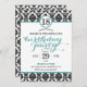 Invitations tendance Turquoise Damask Anniversaire Fête.