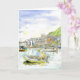 A young man, in a small dinghy (tender), crossing the Fowey River to his sailing boat moored on the Polruan side. The quaint, historic town of Fowey is in the background. The tower of the ancient St. Fimbarrus Church is clearly visible, also the red brick building, which is Fowey Gallants Sailing Club. From original watercolour by Christine Hudson