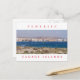 A beautiful view of kite surfers on the island of Tenerife in the Canary Islands with the village of El Médano in the background printed on a postcard.