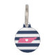 Let your furry friend show some home state pride with this cute Tennessee pet ID tag. Design features a white silhouette map of the state of Tennessee in pink with a white heart inside, on a preppy navy blue and white stripe background. Add your pet's name and contact information to the back in white lettering on a pink background.