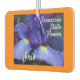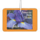 Dress up your car interior with the beauty of nature and the state flower of Tennessee. Single bloom of a large iris flower. Lovely bloom in hues of indigo, blue and purple, with small glimpses of yellow in bright contrast. Dramatic and colourful. Design of the photograph is offset with Tennessee orange around the photo to recognize Tennessee colours of orange and white. Choice of scents!