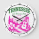 Display your Tennessee state pride, with this charming wall clock. It features the Volunteer State heritage, showcasing a vibrant guitar, flower, and mountains, design. An established 1796 gift, celebrating musical and natural beauty. This Tennessee wall clock, adds timeless rustic charm to any home. Perfect for any one.