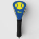 Tennis ball golf head cover with custom name. Cool golf gifts for tennis lover, mom, dad, sports coach etc. Personalize with name or monogram initials. Colours can be changed. Protective sleeve for driver. Upload your own logo optionally.