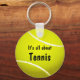 A graphic tennis ball on a keychain. the keychain has the customizable text "It's all about Tennis".