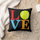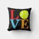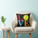 A throw pillow for the tennis person of Pop Art LOVE with a yellow tennis ball for the O . The black background can be changed in the edit drop down menu.