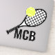 Personalized Monogram Initials Contour Cut Sticker with Tennis Racket and Ball Design available in several sizes for your laptop, water bottle, sticker collection, car, or as favours and gifts for a tennis birthday party.