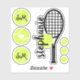 Personalized Name Die-Cut Water Bottle Sticker Set with Tennis Racket and Ball Monogram in a fun and girly brush script font. The sticker set is available several sizes for your gear, laptop, water bottle, sticker collection, OR you can custom print your guest names on each set an use as a unique and luxe party favour, and they are a PERFECT gift to give when attending a tennis theme birthday party.