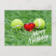 Tennis ball with Happy Birthday on green grass Postcard