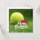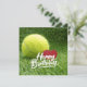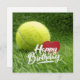 Tennis Birthday with ball and racket on green Card