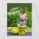 Tennis Birthday with Beer and ball racket on green Postcard