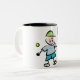 Tennis Cartoon Two-Tone Coffee Mug for kids and adults. Add your own custom text. Fun cup for player, coach, stringer etc.